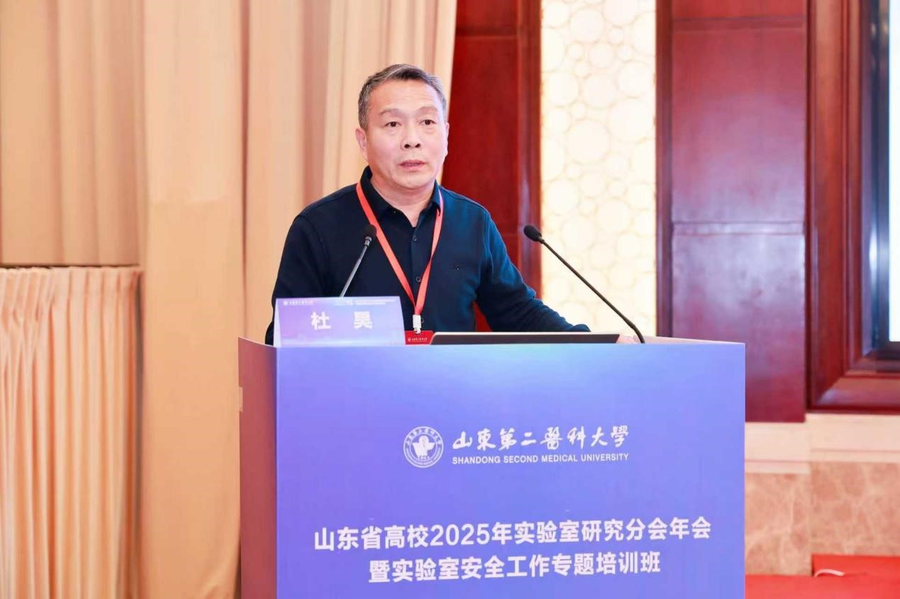1月17日至19日,山东省高校2025年实验室研究分会年会暨实验室安全工作专题培训班在潍坊成功举办。本次会议由山东省高等教育学会实验室建设研究分会主办、山东第二医科大学承办,会议紧扣实验室安全精准管控、建设质量提升及大型仪器设备开放共享等关键议题,内容兼具政策解读、经验分享与实践探讨,来自全省各高校的实验室管理骨干、专家学者齐聚一堂,共话实验室建设与安全管理新路径、新方法。
